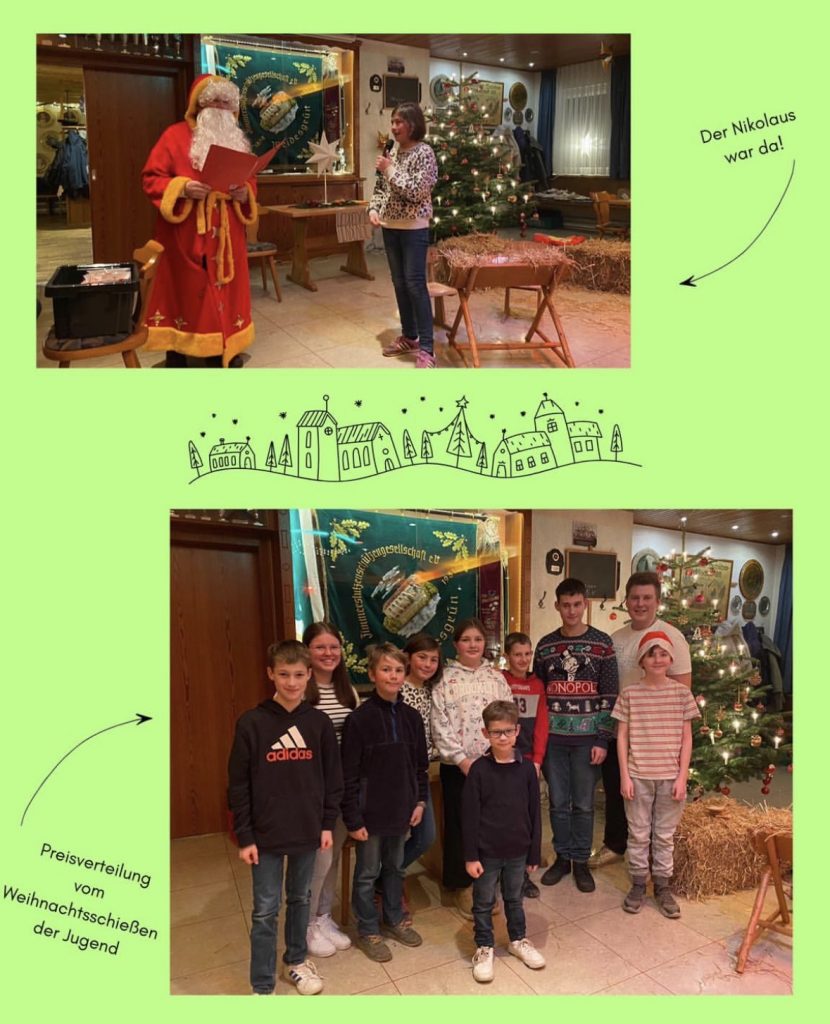 Ein weiterer Höhepunkt war der Besuch des Nikolauses, der den Kindern des Vereins und des Dorfes große Freude bereitete. Für das leibliche Wohl sorgte die Schützenjugend mit selbstgebackenen Plätzchentellern, die bei den Gästen großen Anklang fanden.